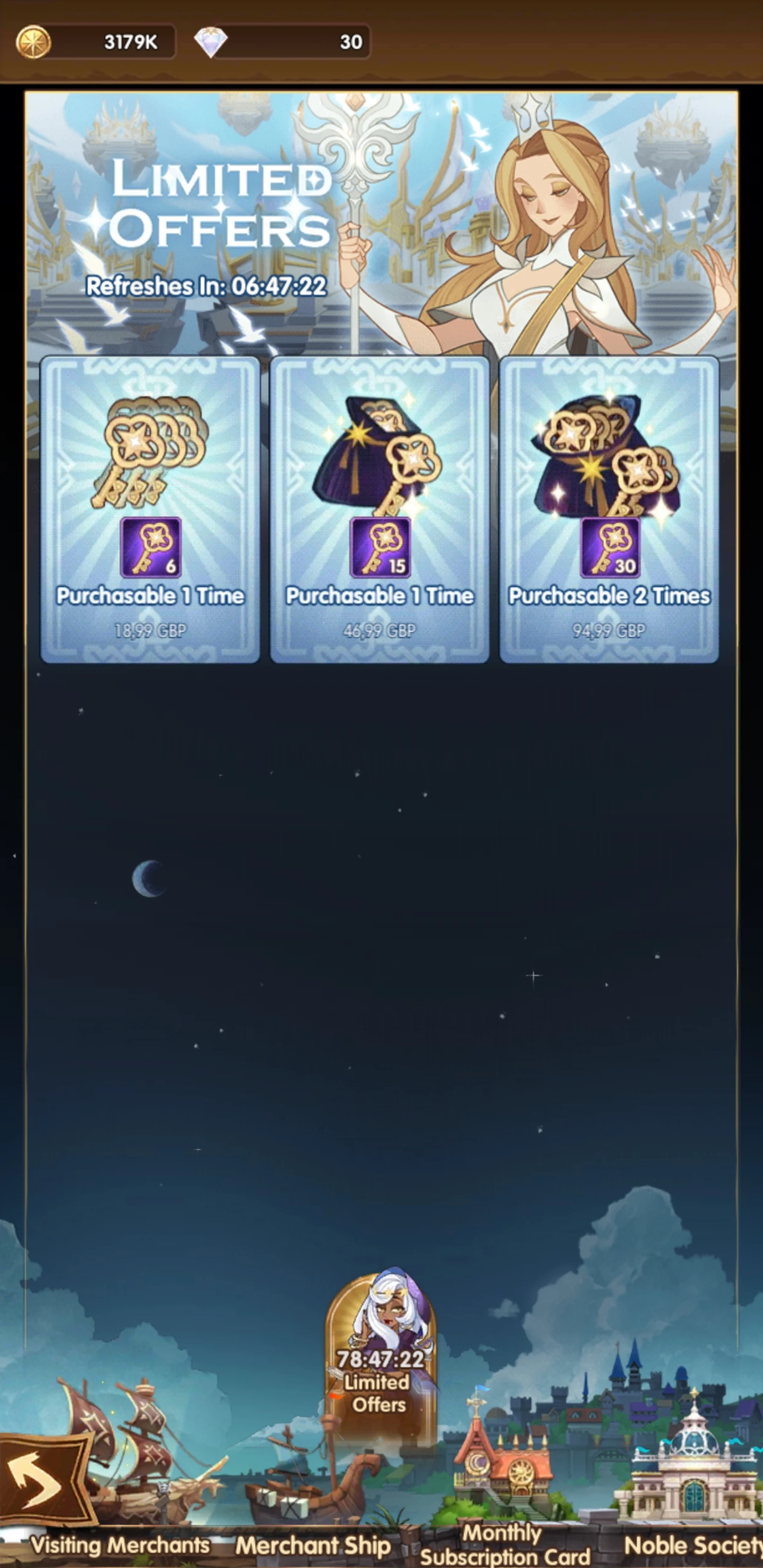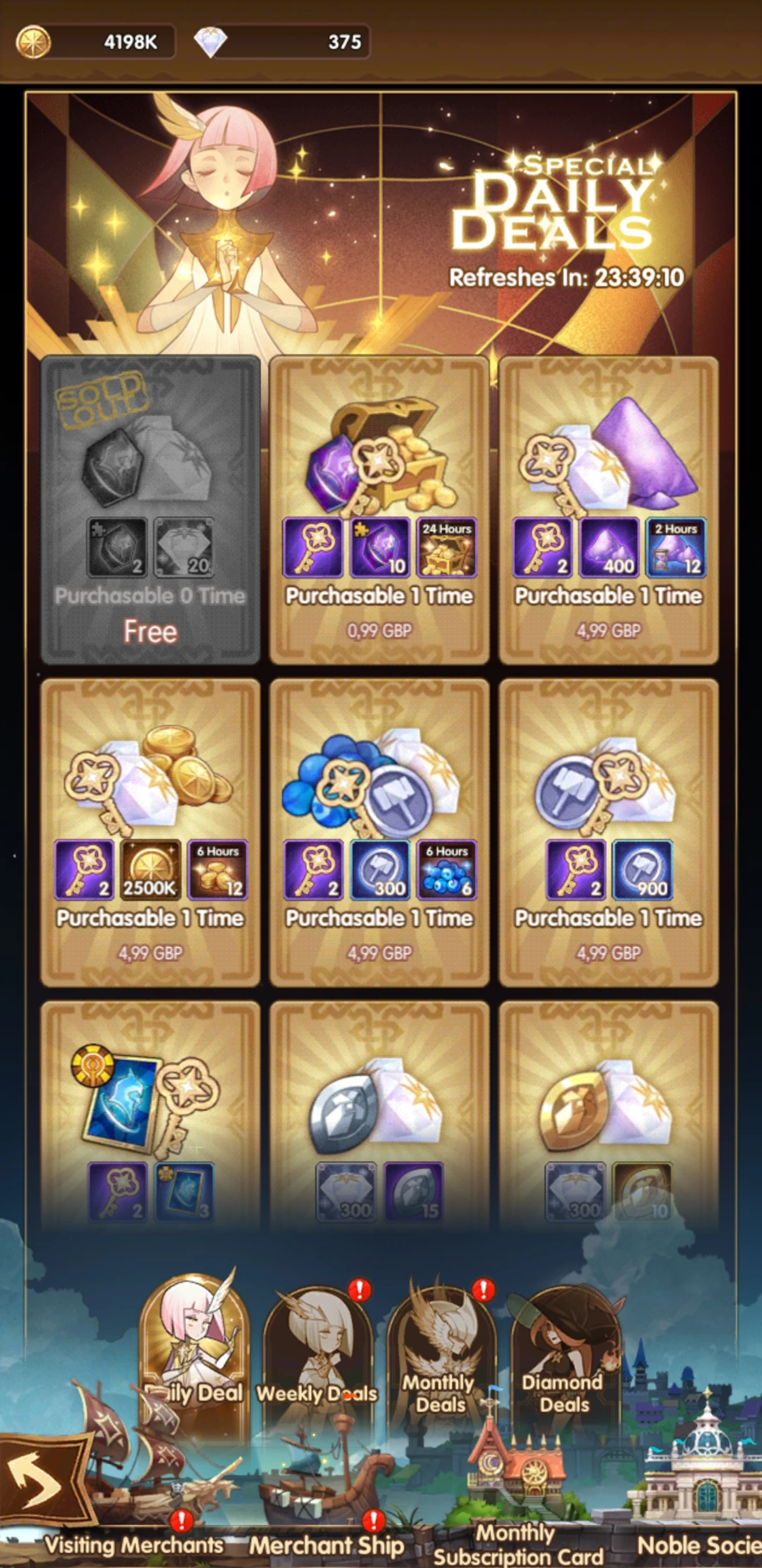 - Visiting Merchants Tab with deals that grant you event-related items (e.g. keys in Celestial Isles event). This tab is not a permanent one.
