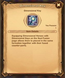 - Equipping Dimensional Keys allows Dimensional Heroes to be placed in the same formation together with their fused counter-part.