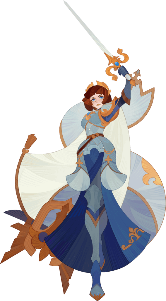 Joan of Arc is a strength-based support hero of the Dimensional faction. She is based on real-life patron saint of France Joan of Arc.