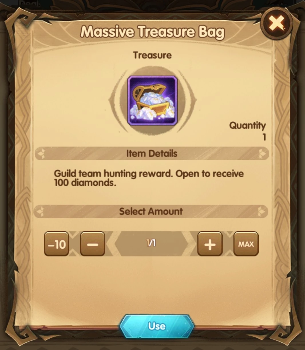 Treasure Bag containing 100 diamonds from team hunting.